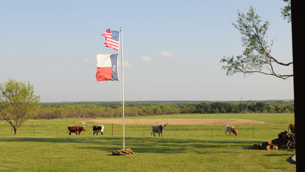 Nestled in the Cross-Timber region in the north end of Texas' famous Hill Country lies this 75 acre working registered longhorn ranch. Karen and Jim Reisman purchased this beautiful property in 2008. Situated 100 miles west of Dallas, TX, this ranch resides in Erath County just north of Stephenville and south of Possum Kingdom Lake. The abundant wildlife includes deer, wild turkey, raccoons, possums, fox, bobcats, pigs, coyotes, ducks, armadillos and doves.